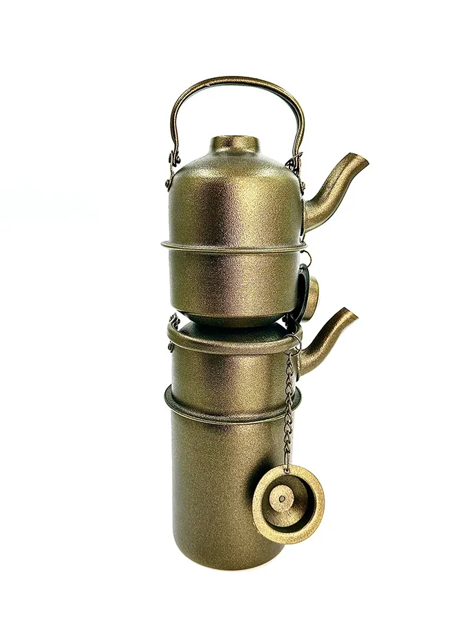 ترکیبی از ظاهر چشمنواز و عملکرد حرفه ای برای طبیعتگردان و علاقه مندان به سفر است. این کتری با طراحی ساده اما خاص و رنگ طلایی درخشان، جلوهای متفاوت به وسایل کمپ شما میدهد.