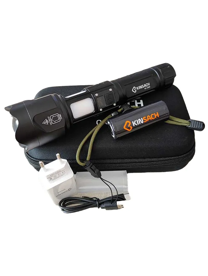چراغ قوه حرفه ای کینساچ kinsach KS-2305 با طراحی مقاوم و قابلیتهای پیشرفته، انتخابی ایدهآل برای استفاده در شرایط مختلف است. بدنهی آن از آلیاژ آلومینیوم ساخته شده که مقاومت بالایی در برابر خط و خش و ضربه دارد. این چراغ قوه با قدرت روشنایی حدود ۳۰۰۰ لومن و برد نور تا ۵۰۰ متر، مناسب طبیعتگردی، کمپینگ، کوهنوردی، شکار و استفادههای اضطراری است.