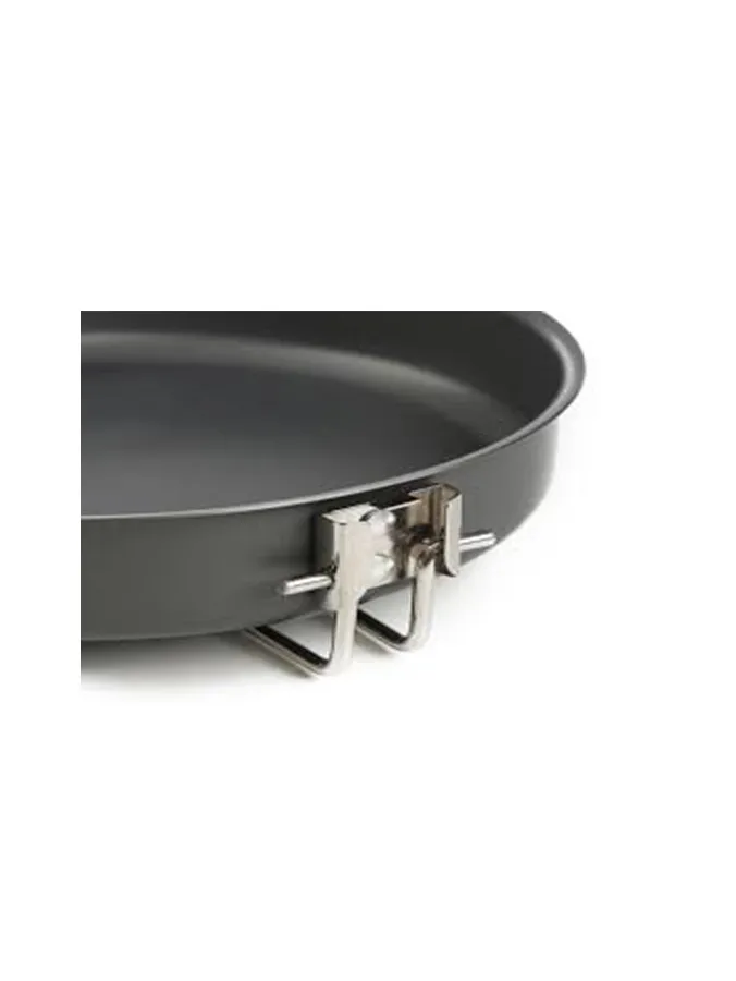 همچنین این ماهیتابه از یک دستگیره با جنس استیل ضد زنگ بهره می برد. که به سادگی تا شده و در زیر ماهیتابه قرار می گیرد. تا فضای بسیار کمی را اشغال کند.