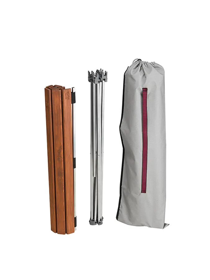 میز چوبی پایه آلومینیومی تاشو یکی از بهترین انتخاب ها برای کمپ و سفر و پیک نیک است. طراحی ظاهری آن با طرح چوب طبیعی، جلوه ای گرم و شیک به فضا میدهد و پایه های آلومینیومی علاوه بر استحکام بالا، وزن میز را سبک کرده تا حمل آن راحت باشد.